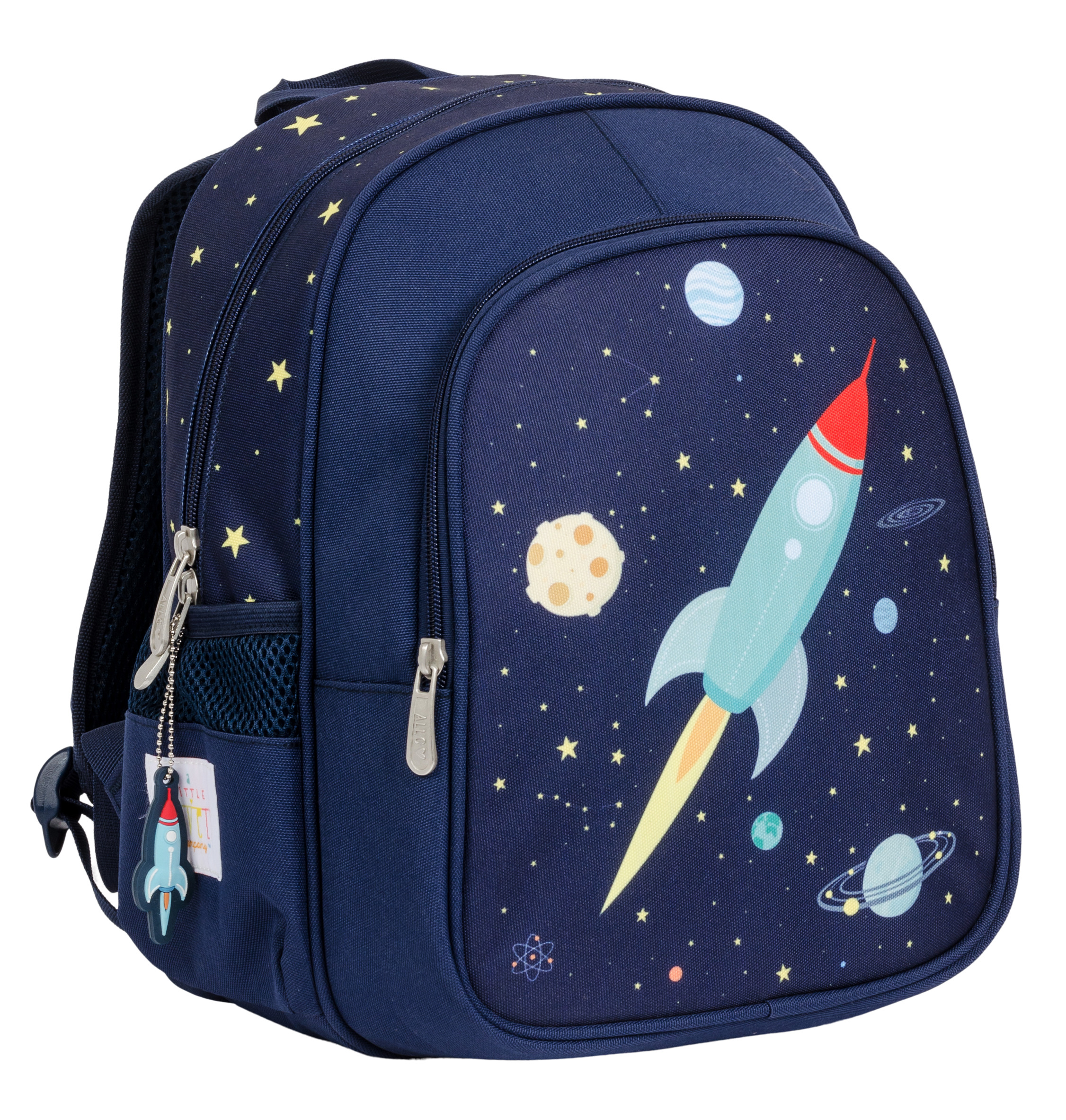 Dieser tolle Rucksack mit isoliertem Teil hat extra viel Platz, zwei Seitenfächer, einen extra Gurt an der Vorderseite und sorgt dafür, dass Häppchen und Getränke kalt oder gerade warm bleiben. Der leichtgewichtige Rucksack im Weltraumdesign hat zwei Hauptfächer. Das grosse Fach ist gross genug für eine Brotdose, Spielzeug, Bücher oder alles, was zum Übernachten bei Oma und Opa notwendig ist, und hat noch ein extra Innenfach. Im Vorfach können Snacks und Getränke aufbewahrt werden, die kalt oder warm bleiben müssen. Die zwei Seitenfächer eignen sich perfekt zum Mitnehmen einer Trinkflasche. Dank des extra Gurtes an der Vorderseite, können die individuell einstellbaren Schultergurte nicht hinabrutschen. Die stabile Rückenpolsterung ist aus einem atmenden Material hergestellt und sorgt für extra Tragekomfort.