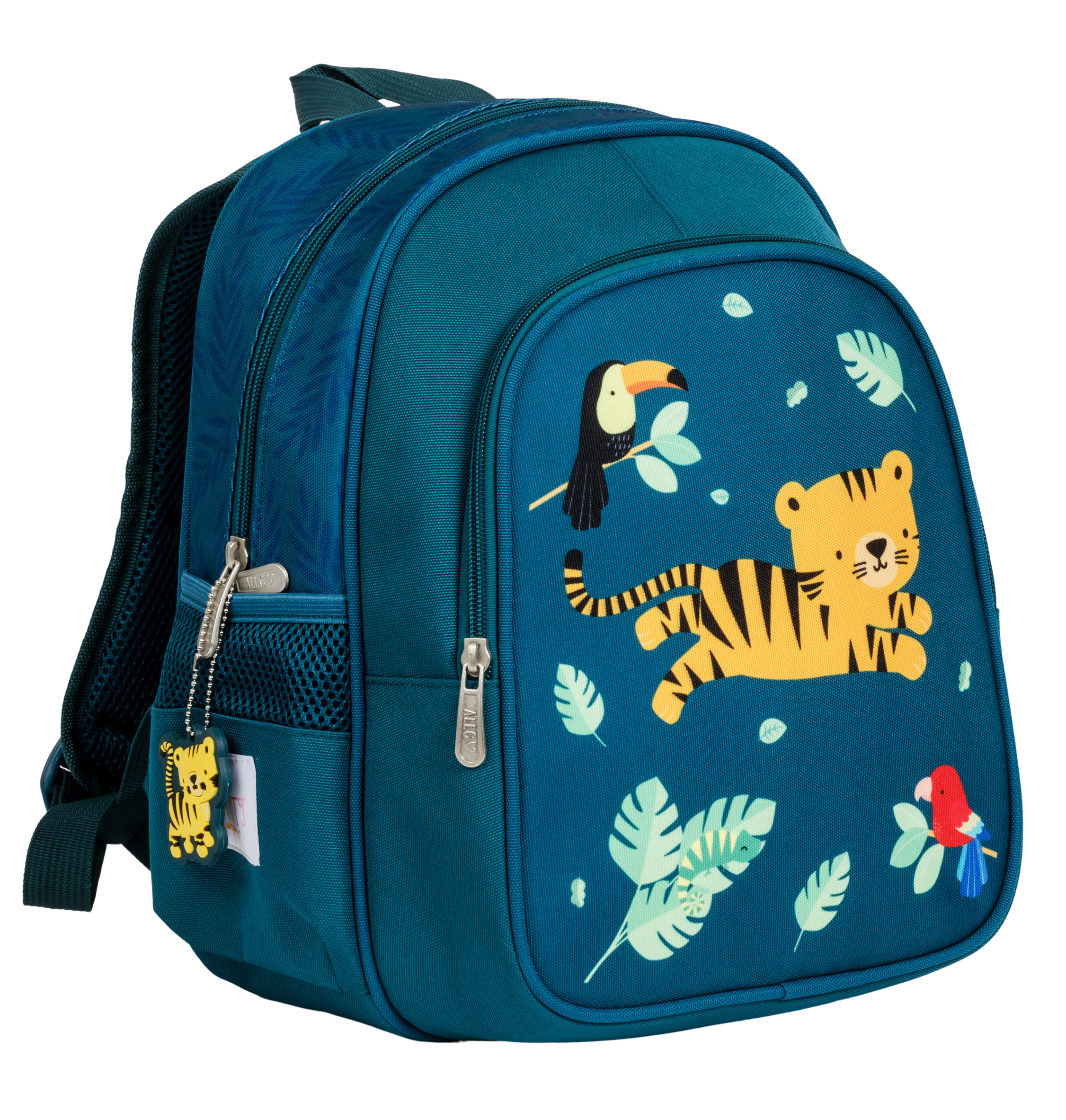 Dieser tolle Rucksack mit isoliertem Teil hat extra viel Platz, zwei Seitenfächer, einen extra Gurt an der Vorderseite und sorgt dafür, dass Häppchen und Getränke kalt oder gerade warm bleiben. Der leichtgewichtige Rucksack im Tigerdesign hat zwei Hauptfächer. Das grosse Fach ist gross genug für eine Brotdose, Spielzeug, Bücher oder alles, was zum Übernachten bei Oma und Opa notwendig ist, und hat noch ein extra Innenfach. Im Vorfach können Snacks und Getränke aufbewahrt werden, die kalt oder warm bleiben müssen. Die zwei Seitenfächer eignen sich perfekt zum Mitnehmen einer Trinkflasche. Dank des extra Gurtes an der Vorderseite, können die individuell einstellbaren Schultergurte nicht hinabrutschen. Die stabile Rückenpolsterung ist aus einem atmenden Material hergestellt und sorgt für extra Tragekomfort.