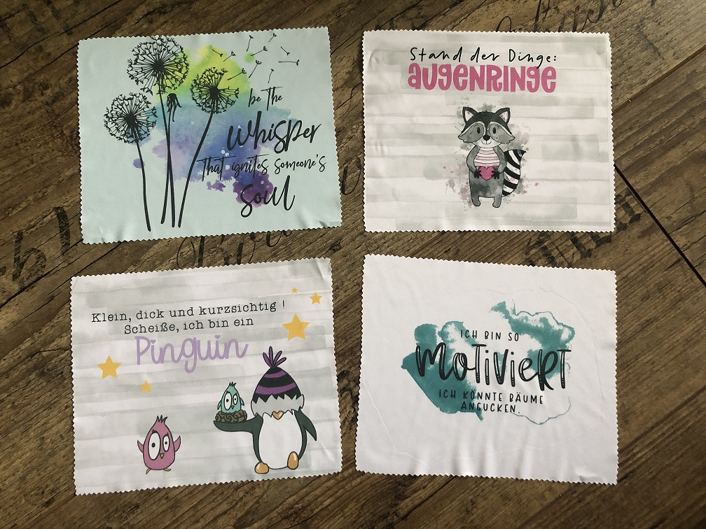 Brillenputztuch mit Wunschsujet, Foto, Spruch