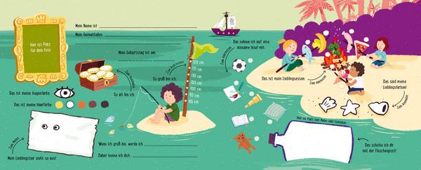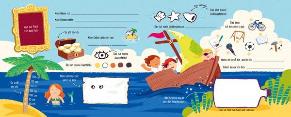 Dieses witzig gestaltete Freundebuch ist für alle Piraten, Seemannstöchter und ihre Kindergartenfreunde. Die wunderschön gestalteten Seiten können von den Kinder weitestgehend selbst und nur mit ein wenig Hilfe der Eltern ausgefüllt werden. Es wird gezeichnet, angekreuzt, ausgemalt und dabei gibt es noch superviel zu entdecken!