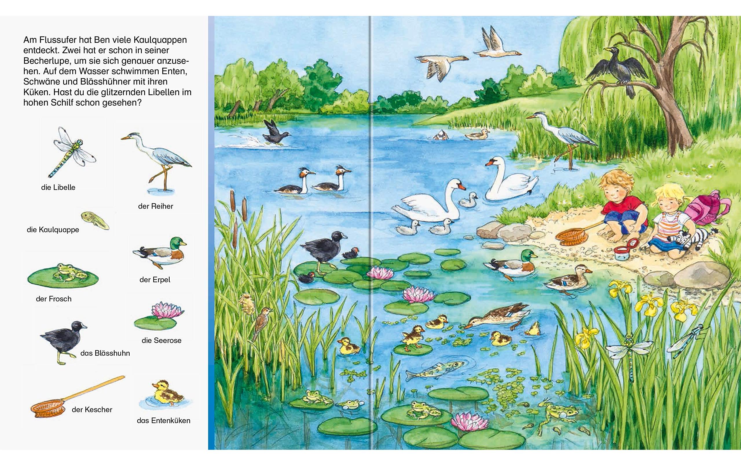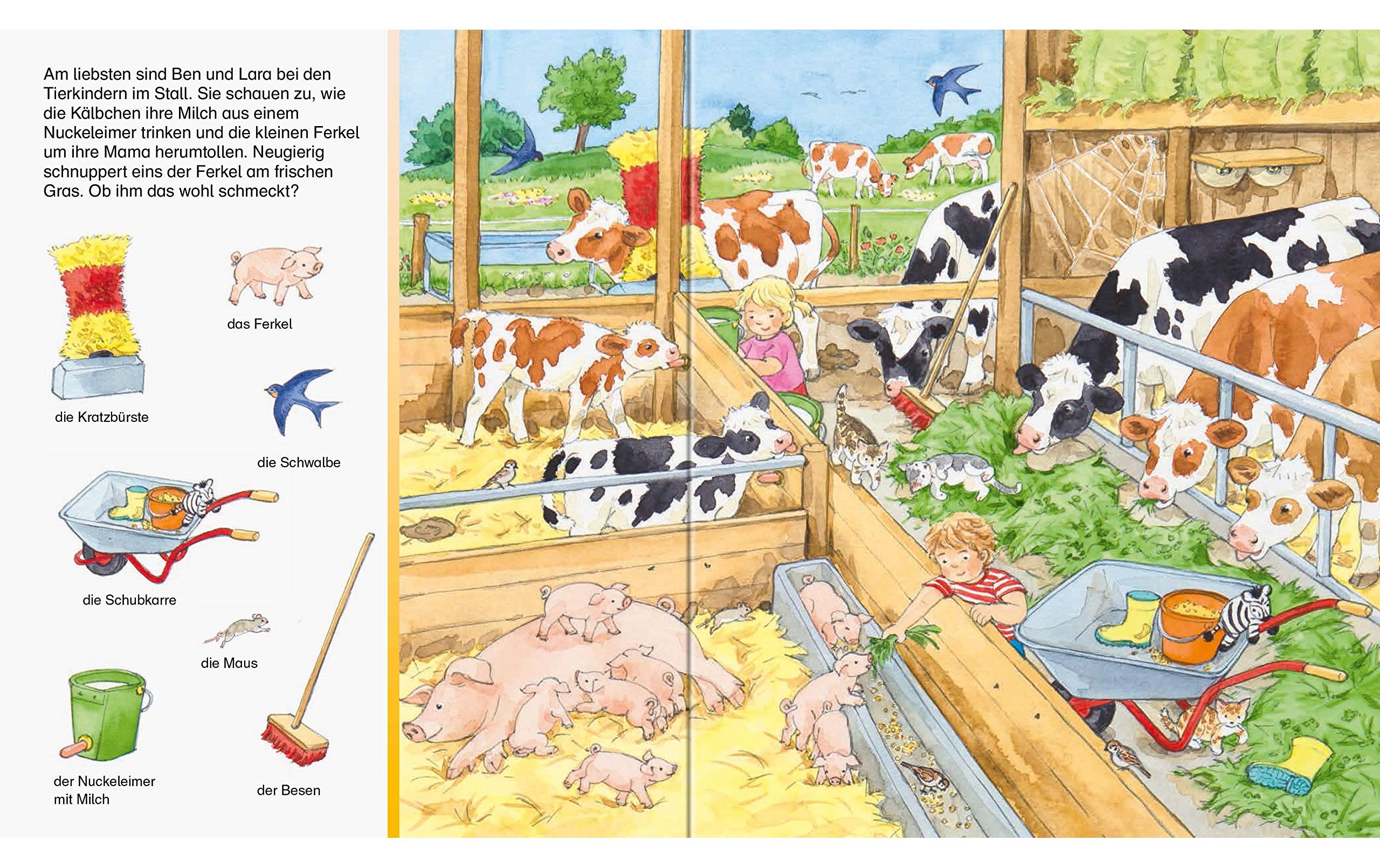Staunend entdecken Ben und Lara viele heimische Tiere in ihrer Umgebung. Auf dem Bauernhof leben die Kühe, Pferde, Schweine, Hühner und viele andere mehr. In der Wiese kann man zahlreiche Insekten entdecken. Und welche Tiere leben im Wald, in den Bergen und in den Dünen? Zahlreiche Suchbilder helfen beim Benennen der Tiere und laden zum suchen und wiederfinden ein. Ein umfangreiches erstes Tierbilderbuch, das zum ständigen Begleiter für kleine Tierliebhaber wird.