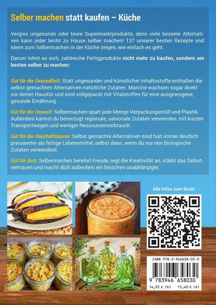 Vergiss ungesunde oder teure Supermarktprodukte, denn viele bessere Alternativen kann jeder leicht zu Hause selber machen! Wunderbrot backen ohne Mehl, selbst gemachte Hefe, Gemüse-Brühpulver, Apfelessig, Sauerteig für eigenes Brot, Hustensaft, Tassenkuchen, Toastbrot, Ketchup und noch viel mehr unserer besten Anleitungen und Rezepte haben wir in diesem Buch zusammengestellt. 137 unserer besten Ideen zum Selbermachen in der Küche zeigen, wie einfach es geht.