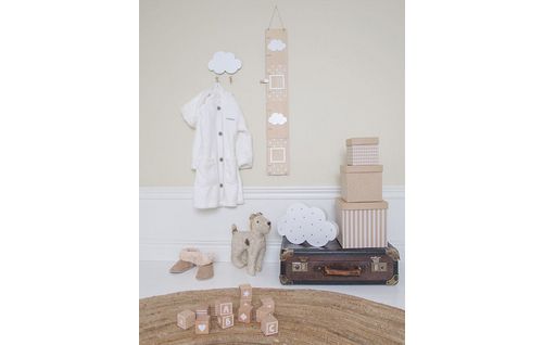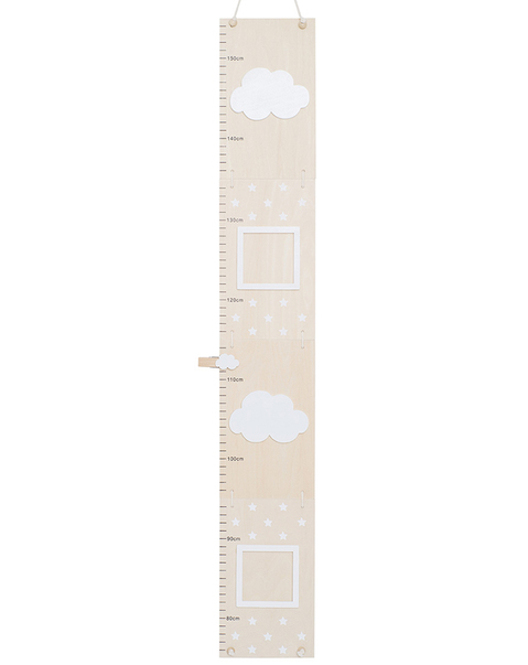 Diese hübsche Messlatte ist nicht nur sehr dekorativ, sie zeigt dem Kind auch die momentane Grösse an, die kann nämlich mit einem Clip markiert werden.