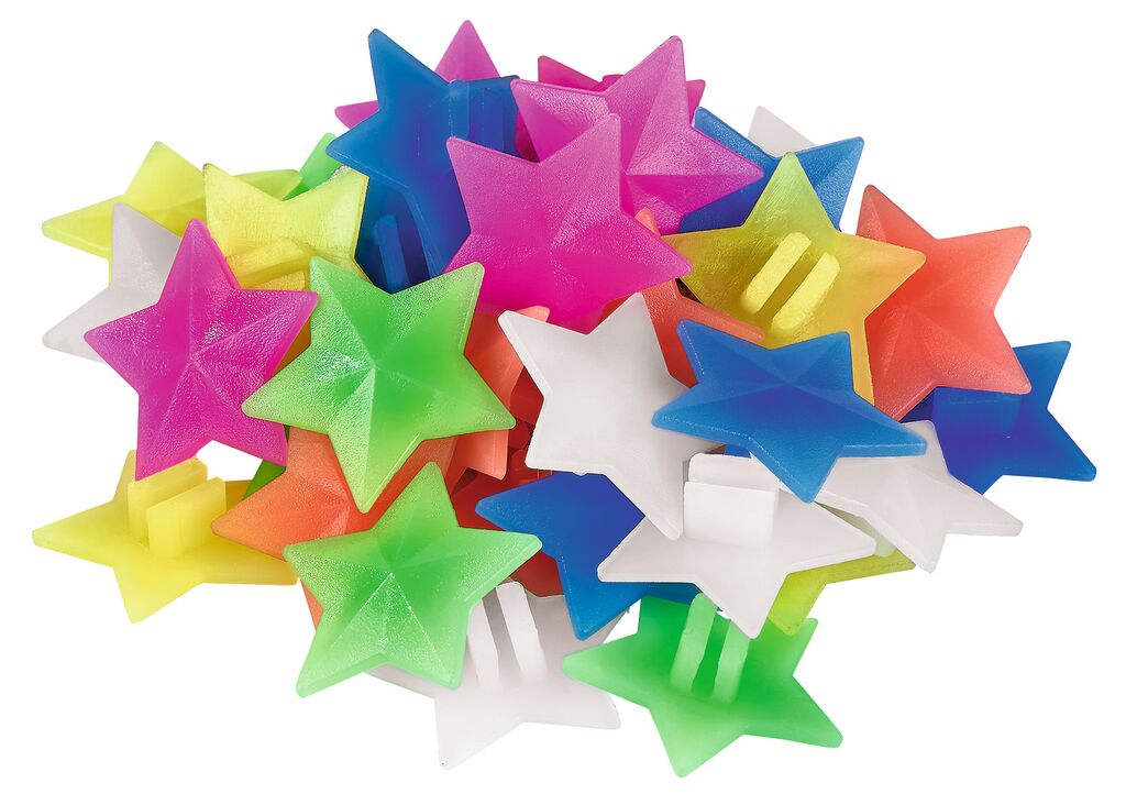 Inhalt: 36 bunte Speichen-Sternchen oder Klicker