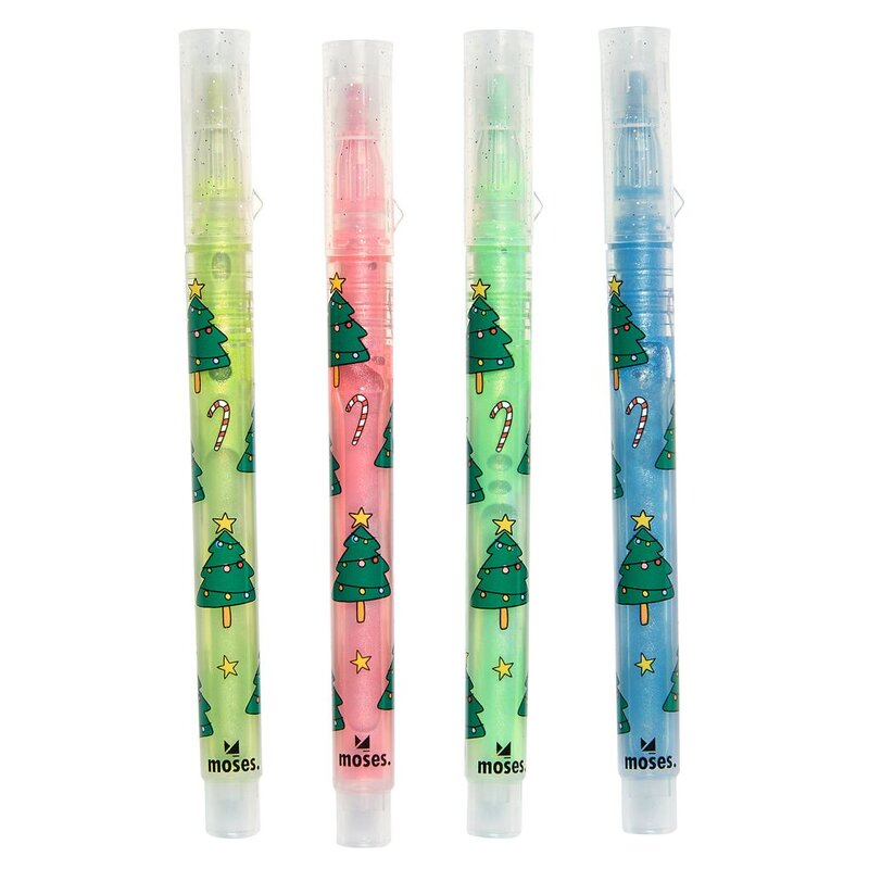 4 Gltzerfilzstifte in rot, gelb, grün und blau