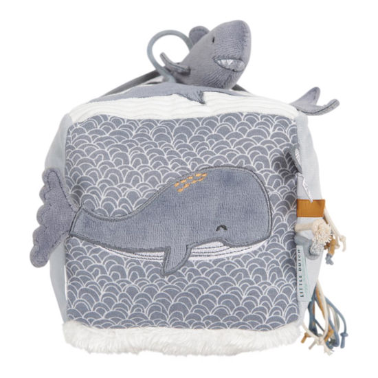 Der weiche Little Dutch Aktiv-Würfel mit Unterwassertieren enthält viele Aktivitäten, die die Sinne des Babys anregen. Es gibt so viel zu entdecken und zu spielen: verschiedene Etiketten und Texturen, ein Spiegel und ein Beißring mit Perlen, die bei jeder Bewegung ein angenehmes Geräusch erzeugen. Es gibt auch einen kleinen Hai, der gerne Verstecken spielt in seinem Beutel. Dieses Spielzeug bleibt interessant und sorgt für viel Spaß im Laufgitter.