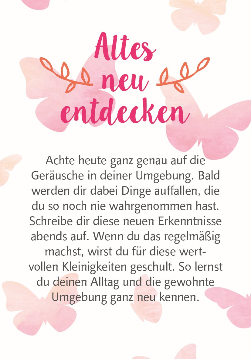 • Finde dein Ritual: Ziehe jeden Morgen ein Kärtchen und mach es zu deinem Tagesmotto