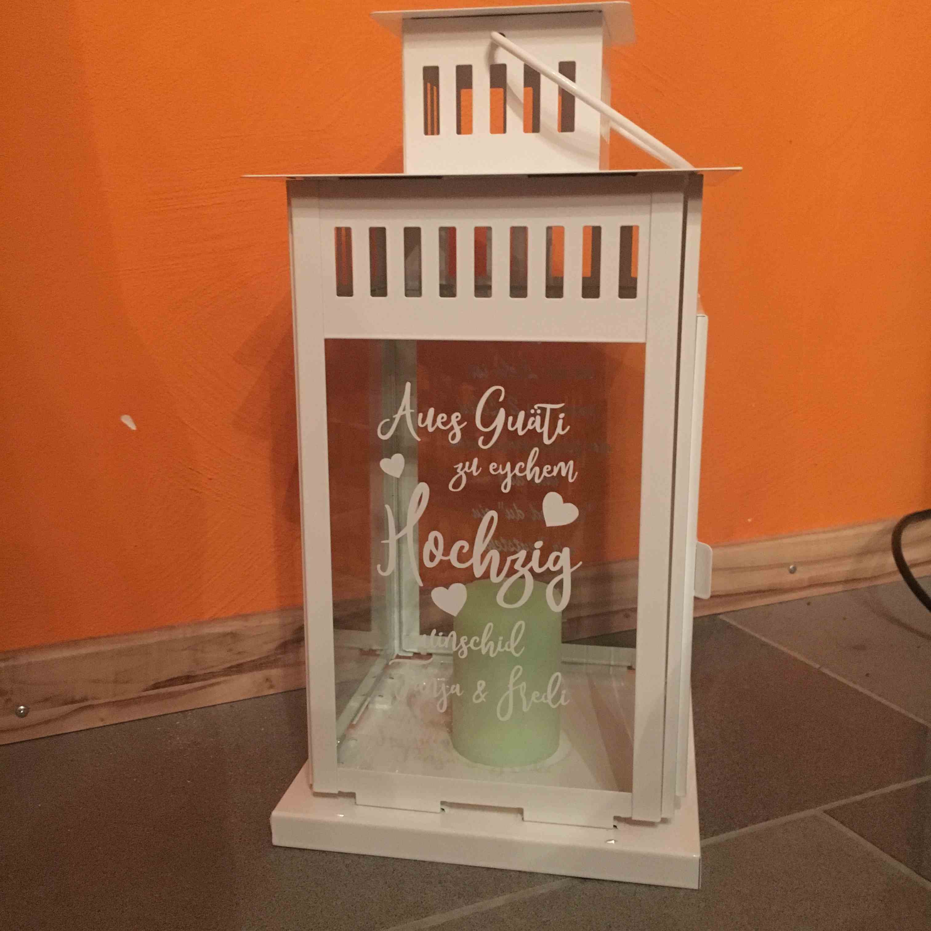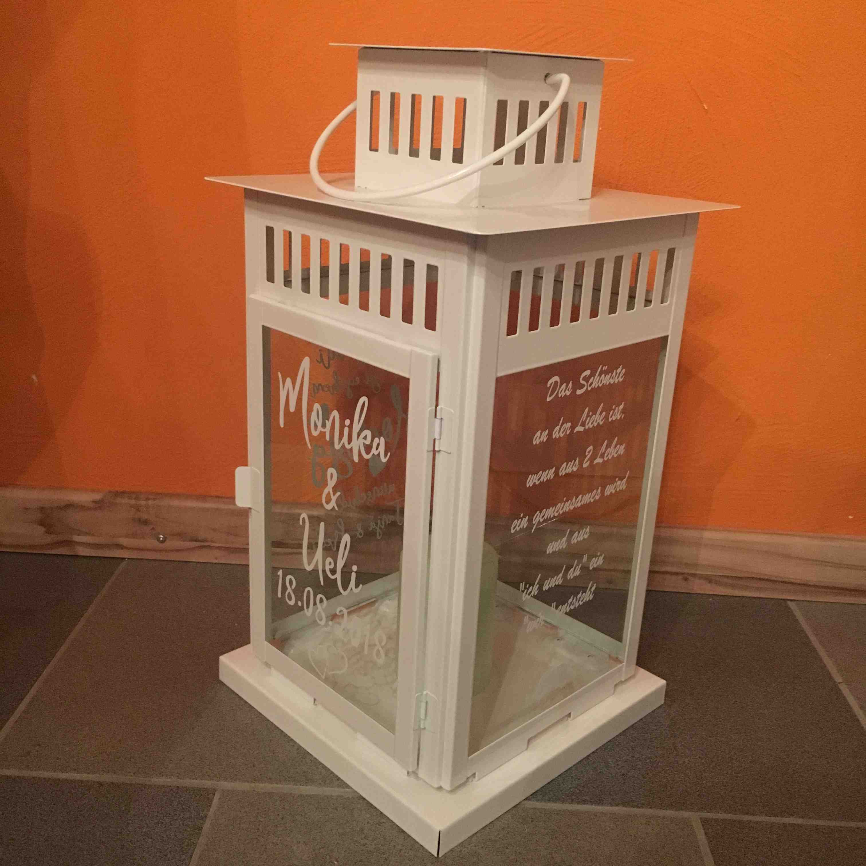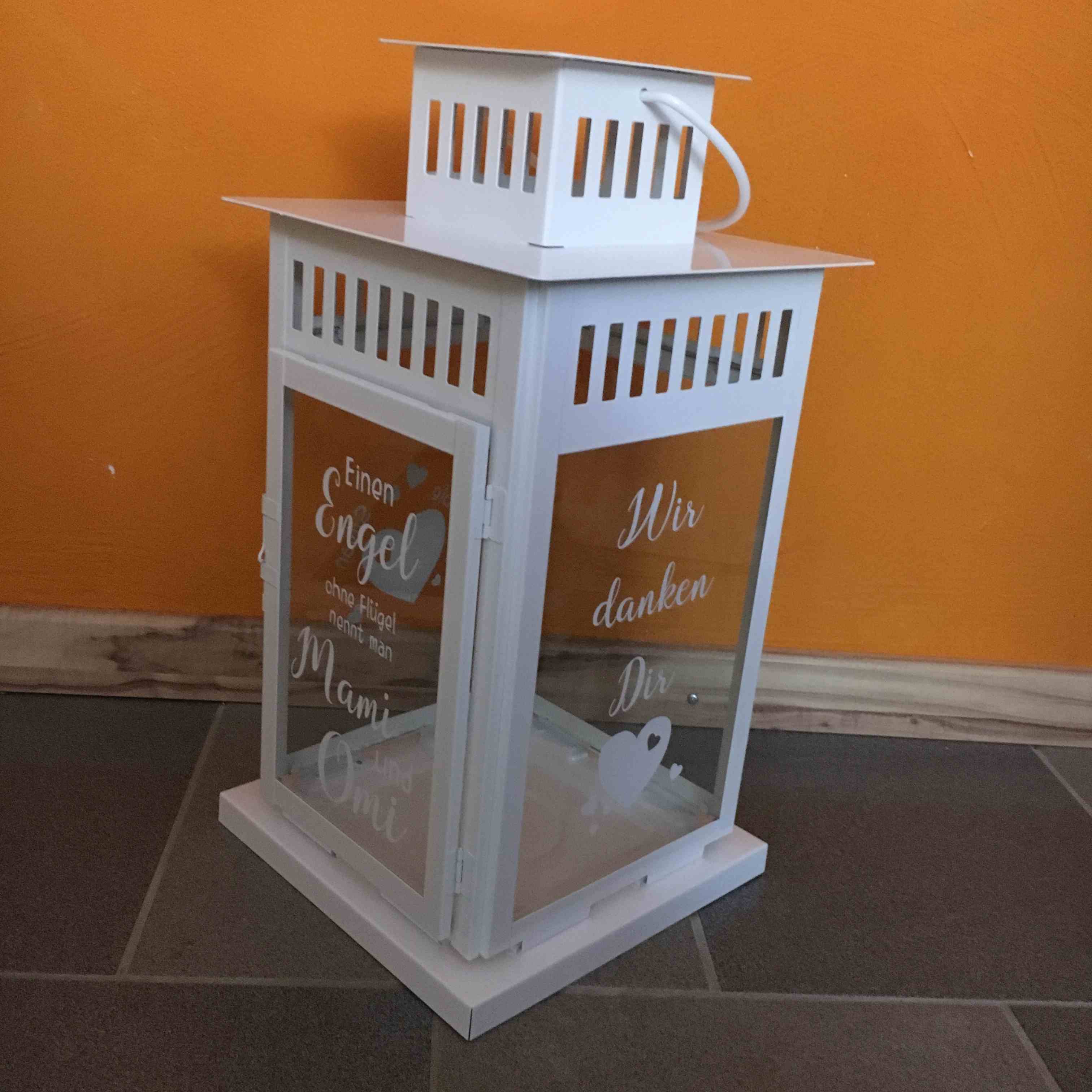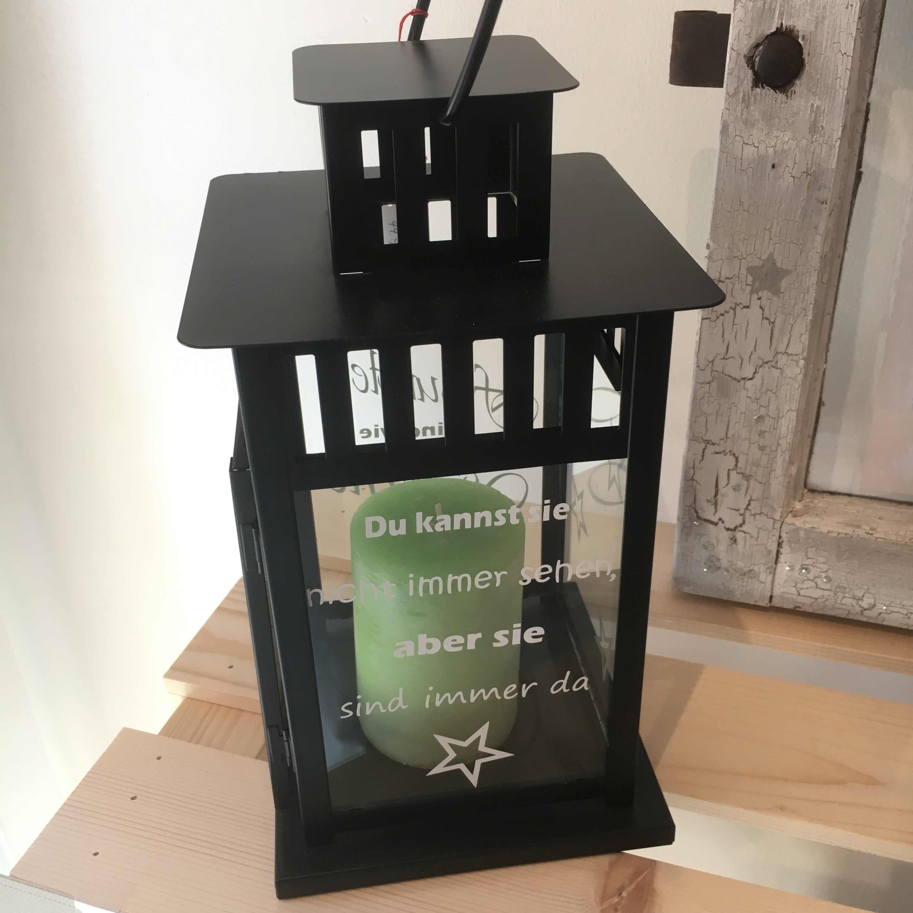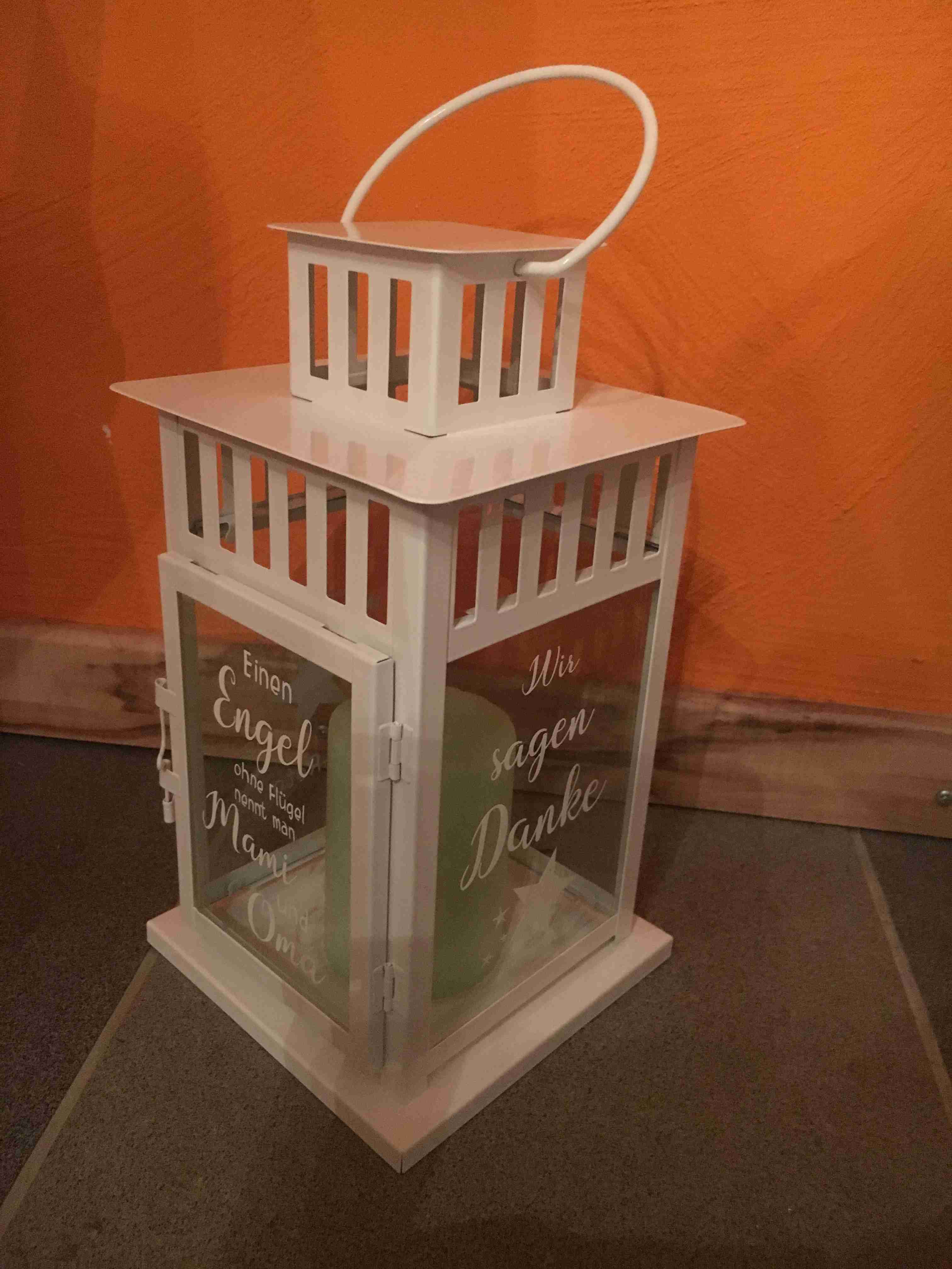 Für das genaue Design nehme ich mit euch dann persönlich Kontakt auf, damit die Laterne auch euren Wünschen entspricht.