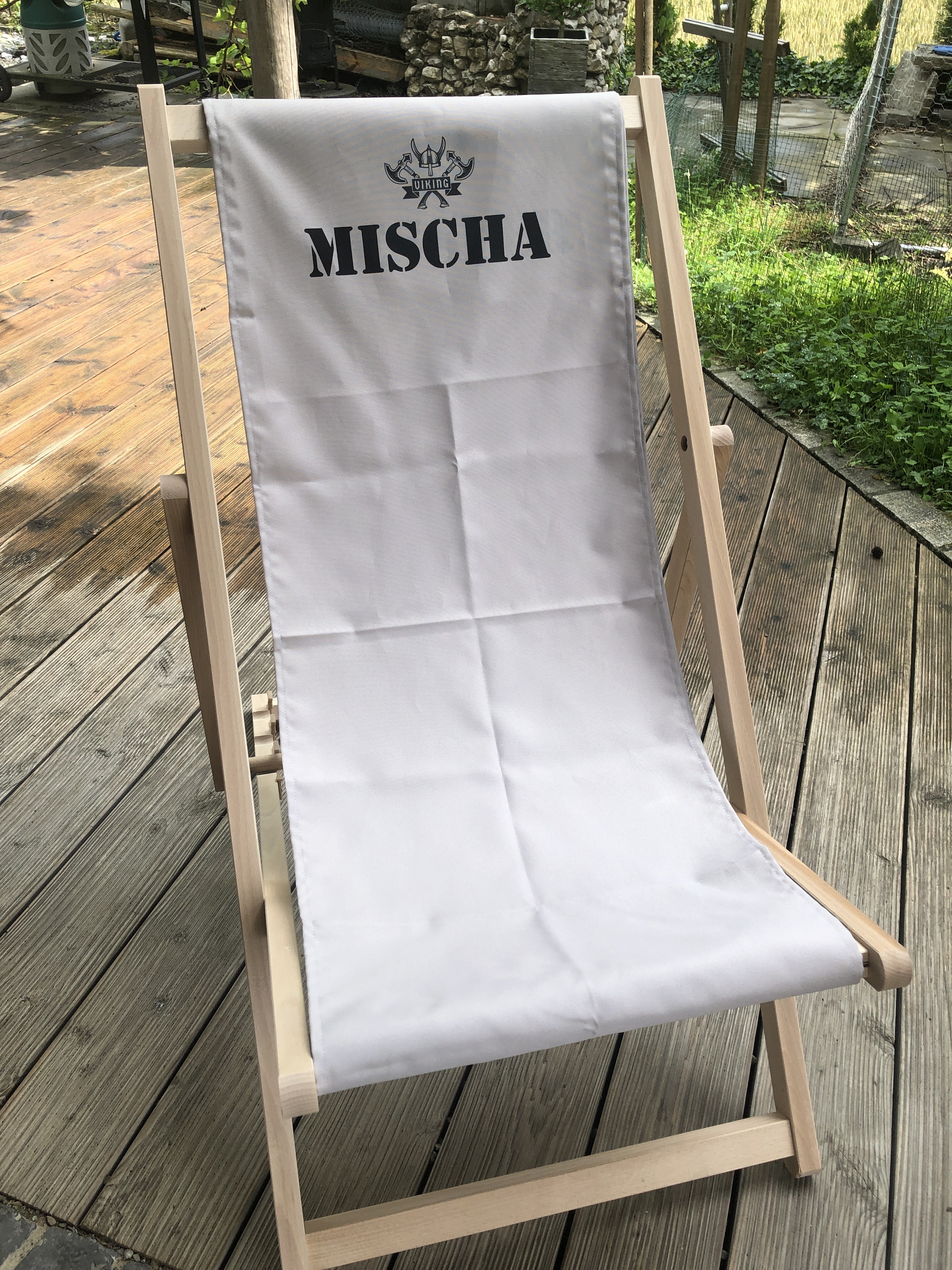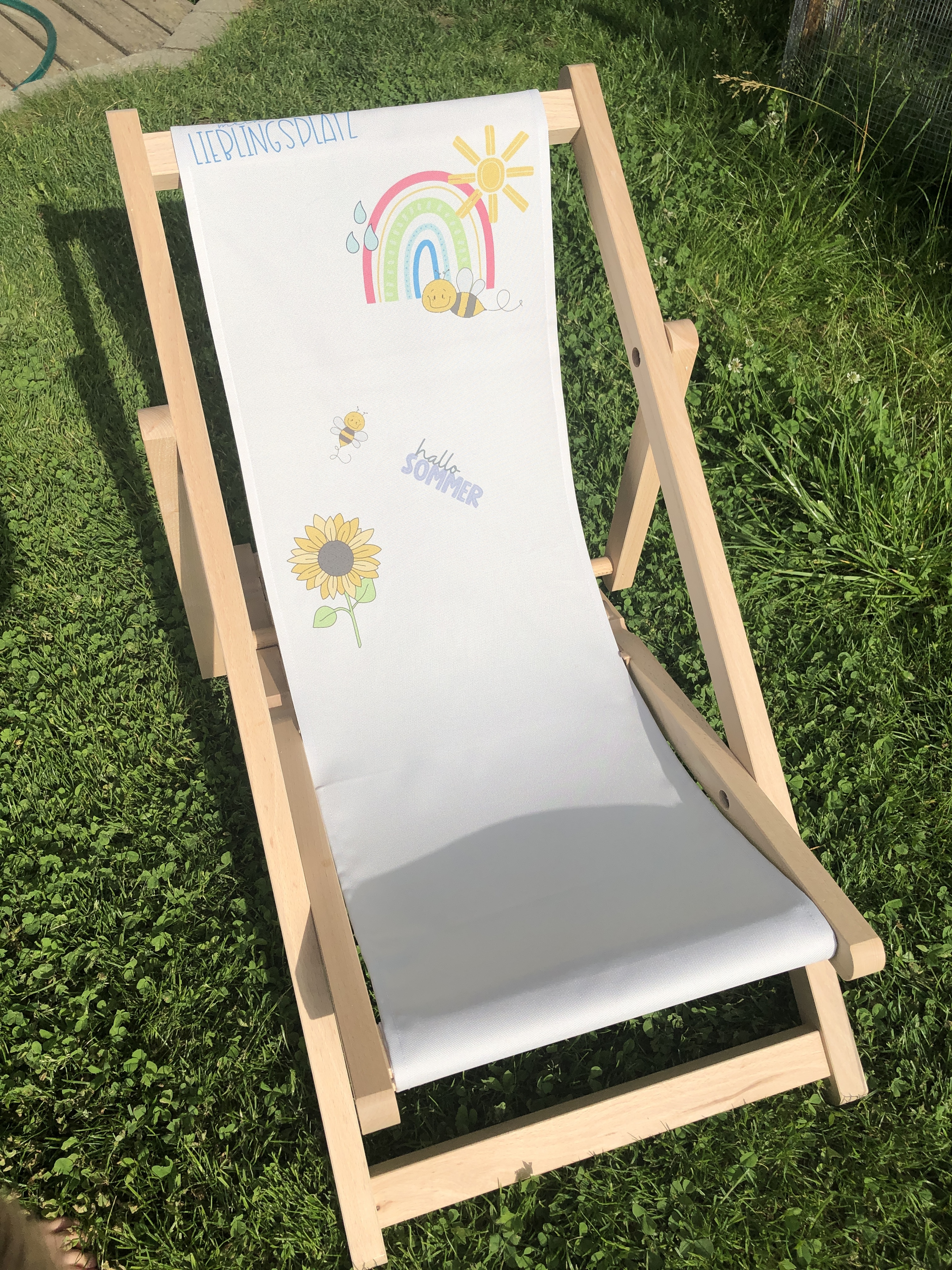 Dieser Liegestuhl kann ganz nach Wunsch personalisiert werden. Mit Namen, schönem Spruch oder auch Zeichnungen wird er zum individuellen Geschenk und zum Hingucker in jedem Garten.