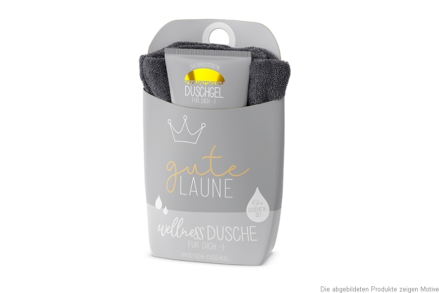 Duschgel- zertifizierte Naturkosmetik mit einem Handtuch aus Baumwolle Tolles kleines Mitbringsel. Ideal für Reisen.
