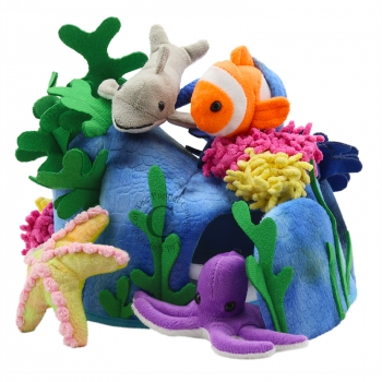 Tolles Korallenriff von The Puppet Company mit integrierten Fingerpuppen ( Nemo, Delfin, Seestern und Tintenfisch ) regt zum Spielen an. Fördert die Krativität und die Fantasie. Grösse ca. 24 cm