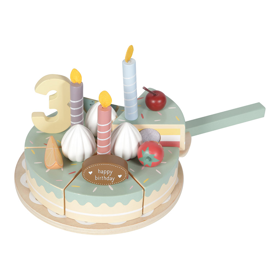 Mit diesem tollen Kuchen von Little Dutch lässt sich der Puppengeburtstag besonders schön feiern. Nebst den Tortenstücken enthält das Set Kerzen, Zahlen und verschiedene Dekoration welche zum Spielen anregen.Passend dazu natürlich noch eine Tortenheber und eine Tortenplatte. :-)
