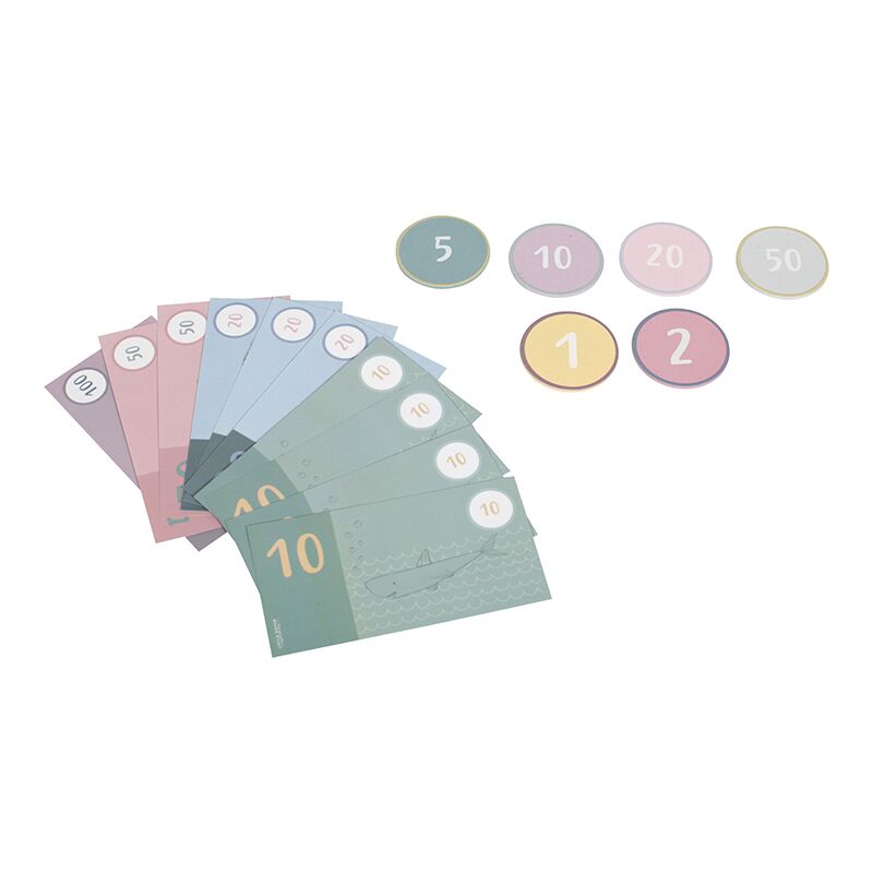 Diese gut gestaltete Holzspielzeugkasse ist perfekt für stundenlanges, vergnügliches Rollenspiel. Die Kasse von Little Dutch beinhalte t einen Scanner, Druckknopfzahlen, eine Geldschublade, Spielzeuggeld und eine Zahlungskartenoption. Erhältlich in einer schönen Mintfarbe.