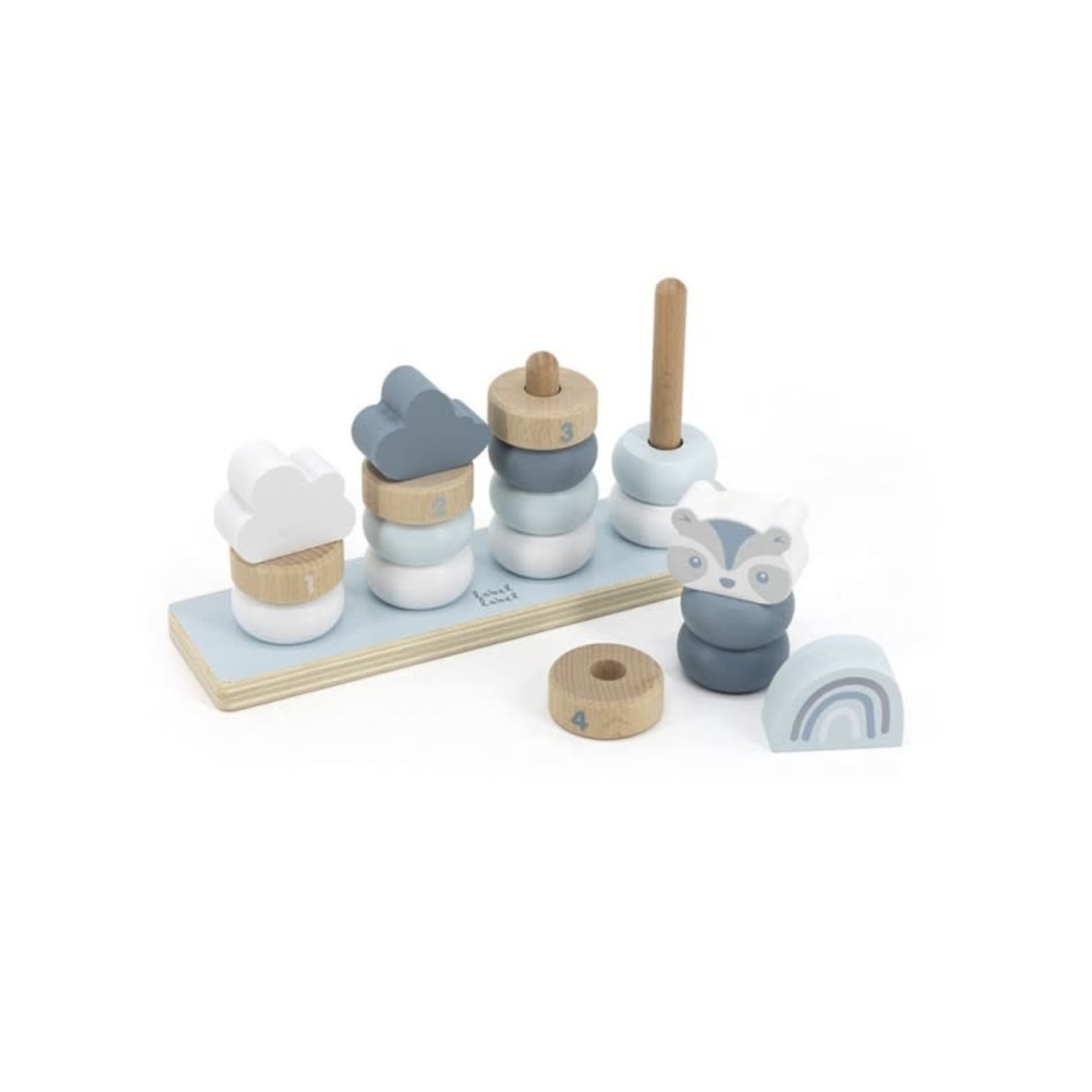 Lernen Sie den supersüßen neuen Freund von Label Label mit einem lustigen Stapelspiel kennen, das speziell für neugierige kleine Hände entwickelt wurde. Diese 4 stapelbaren Türme auf einem soliden Sockel sind aus hochwertigem FSC-zertifiziertem Holz gefertigt und mit kinderfreundlicher Farbe auf Wasserbasis gefärbt. 10 bunte Stapelringe, 4 nummerierte Stapelringe und 4 obere Blöcke im Label Label-Stil helfen Ihrem Kind beim Stapeln, Sortieren, Zählen, ... und vielem mehr. Kinder können ihre eigenen Spiele erstellen und die Ringe in der Reihenfolge der Farben nebeneinander stapeln, Farben mischen, auf dem Ständer oder nicht, mit oder ohne Figuren ... Erstellen Sie eine Geschichte mit den supersüßen oberen Blöcken und dem Label Label. Oder erstellen Sie ihre eigenen Figuren! Während Ihr Kind unbeschwert spielt, bietet dieses kleine Stapelspiel einen großen pädagogischen Mehrwert. Es regt die Fantasie und Kreativität an, Ihr Kind lernt Farben zu sortieren, zu zählen und die ersten Zahlen zu lernen. Verschwenden Sie keine Zeit ... machen Sie sich an die Arbeit mit diesen niedlichen stapelbaren Ringen von Label Label!