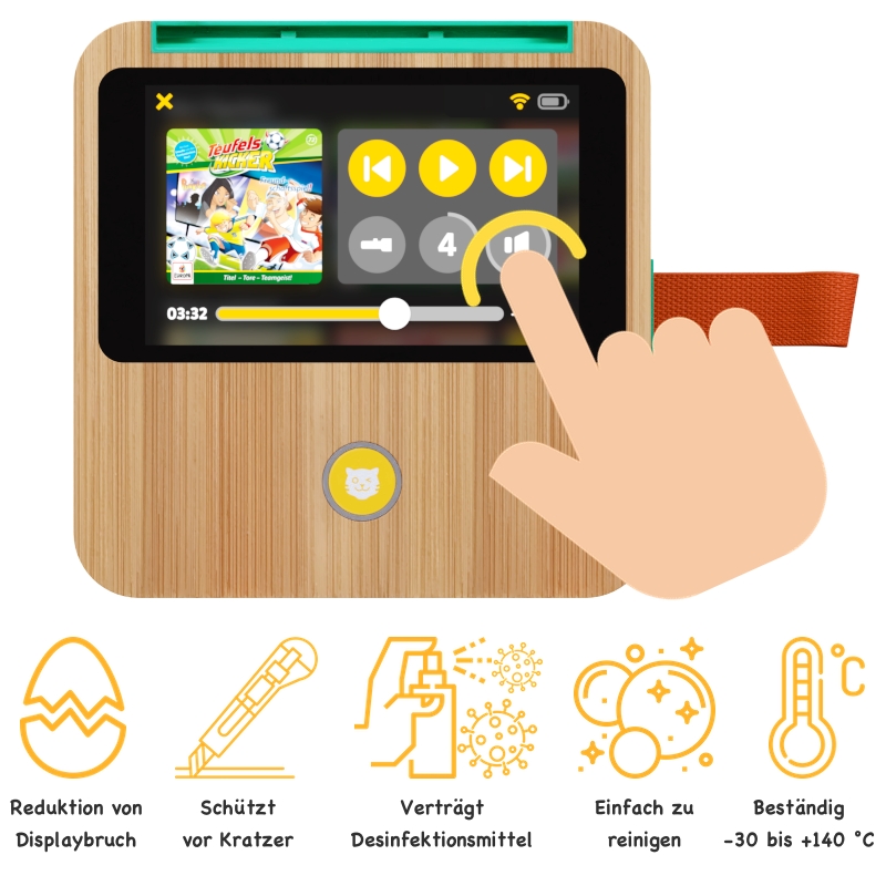 Zudem ist das OnScreen® Hybridglas speichelecht und schützt das Display der Tigerbox TOUCH effektiv gegen Kratzer und Stürze.